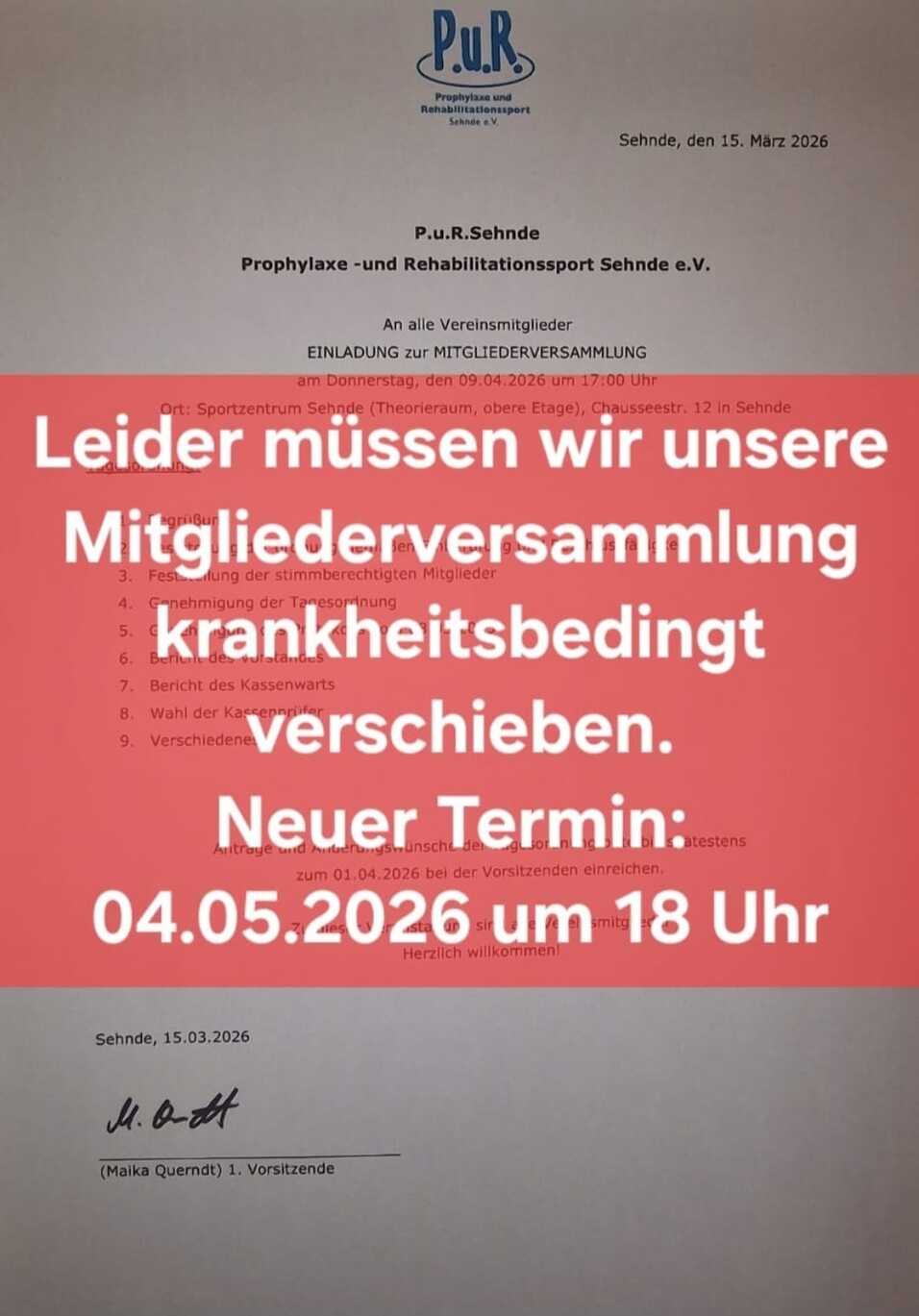 Leider müssen wir unsere Mitgliederversammlung krankheitsbedingt verschieben.